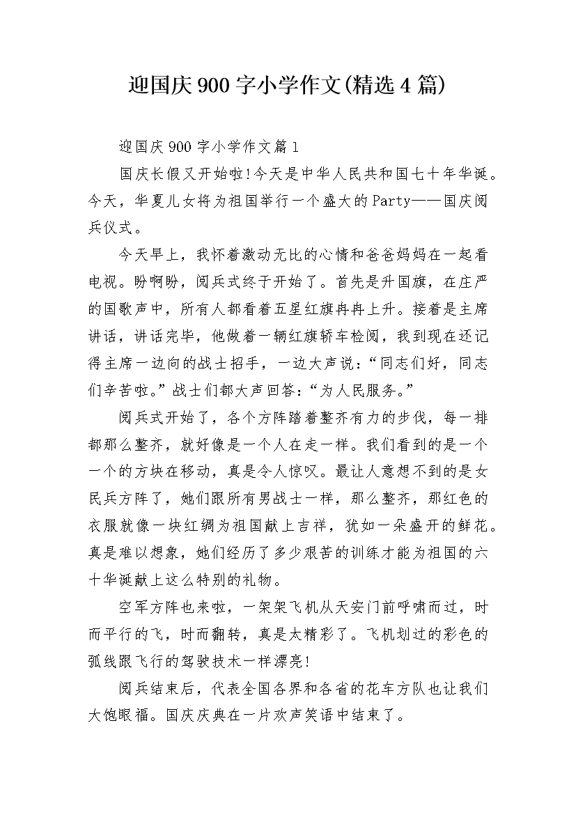 迎国庆900字小学作文(精选4篇)
