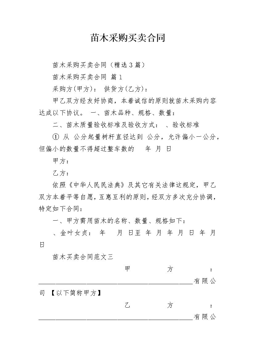 苗木采购买卖合同