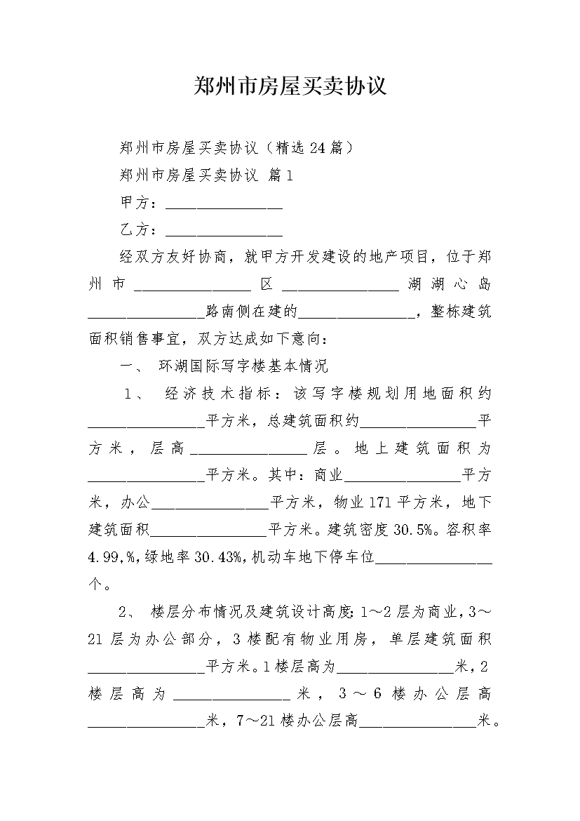 郑州市房屋买卖协议