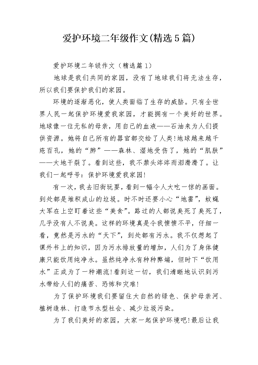 爱护环境二年级作文(精选5篇)