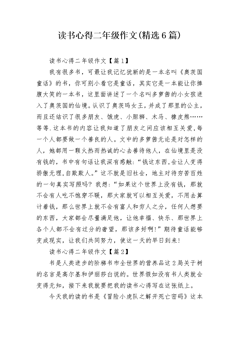 读书心得二年级作文(精选6篇)