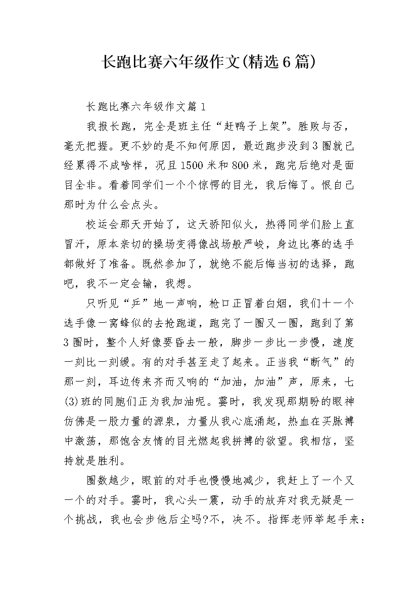 长跑比赛六年级作文(精选6篇)