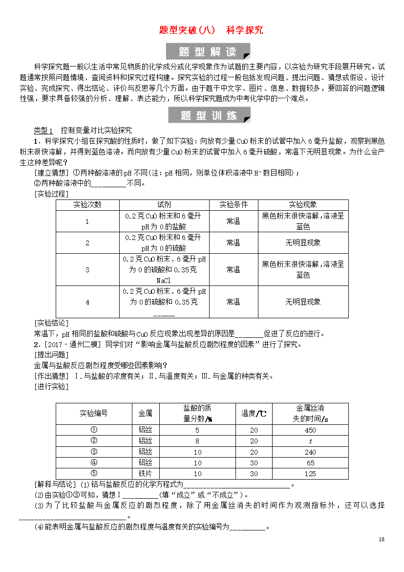 试题-北京-2019_北京市2018年中考化学基础复习 题型突破(八)科学探究练习