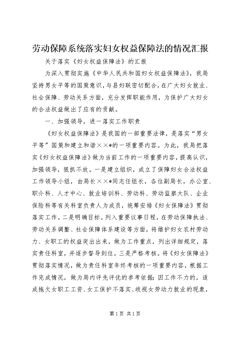 劳动保障系统落实妇女权益保障法的情况汇报 (3)