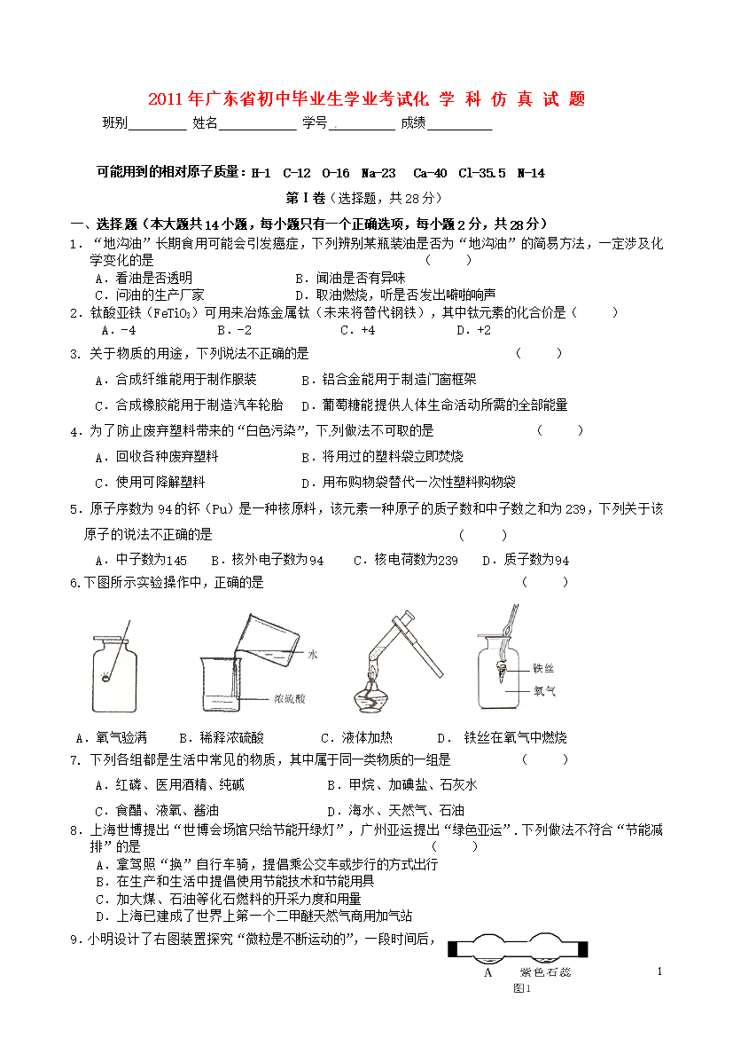 试题-广东-2011_广东省2011届初中化学毕业生学业仿真考试