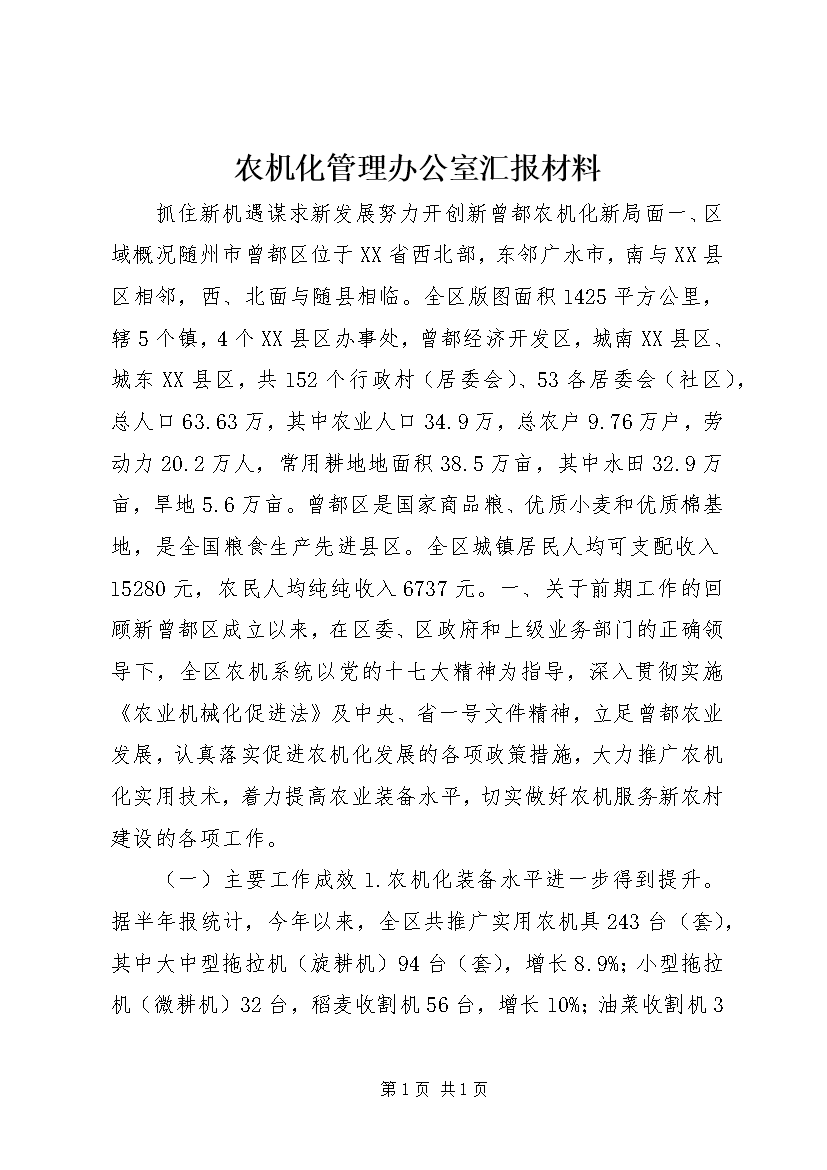 农机化管理办公室汇报材料
