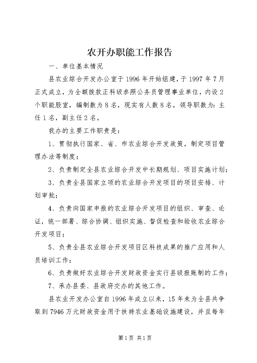 农开办职能工作报告