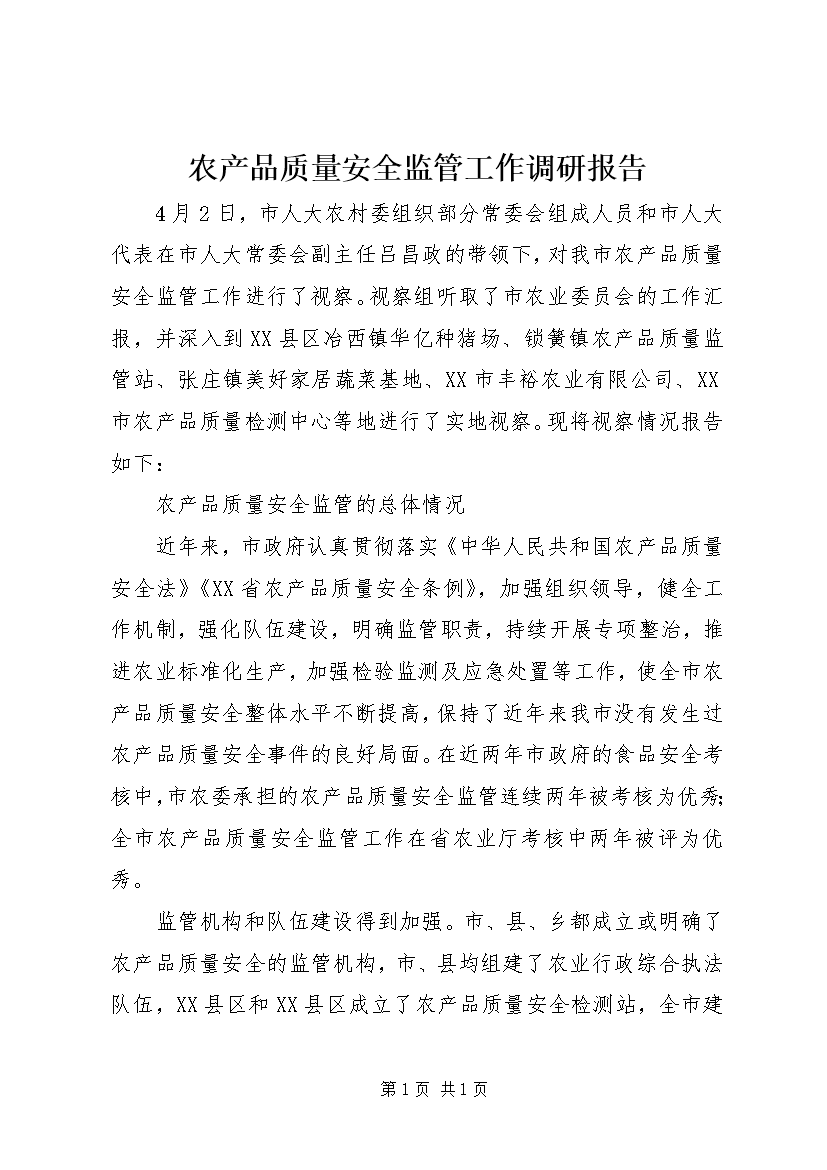 农产品质量安全监管工作调研报告 (2)