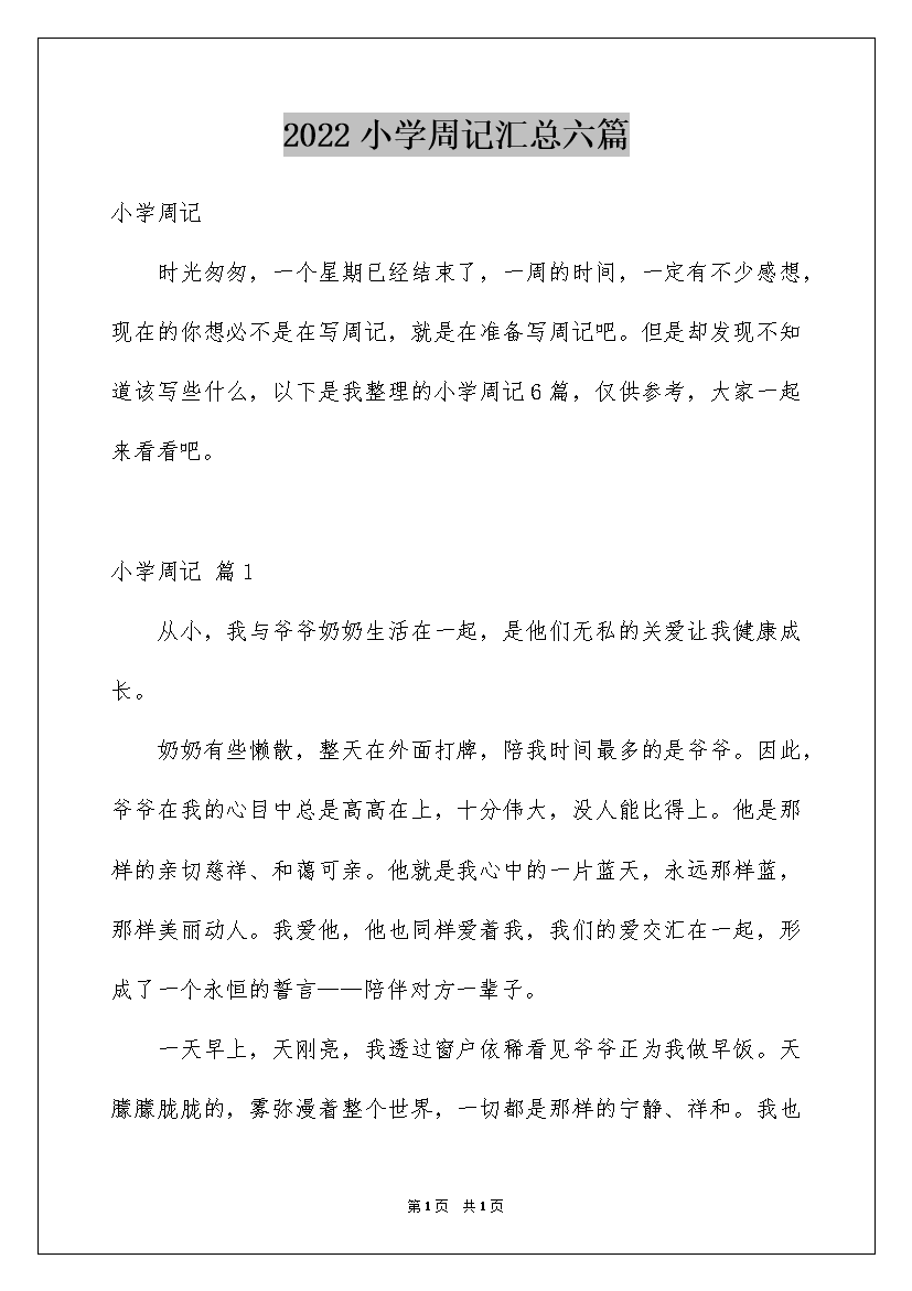 2022小学周记汇总六篇