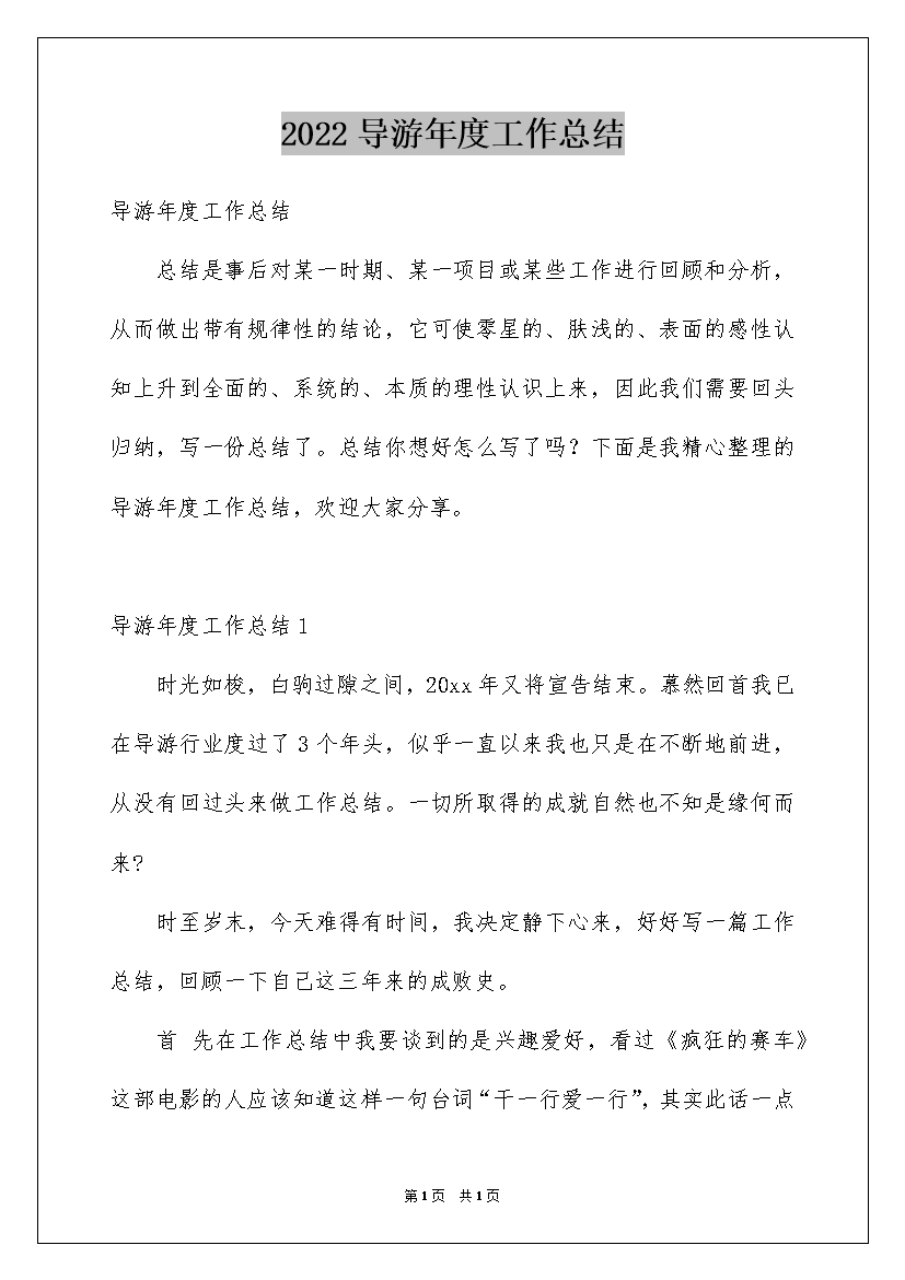 2022导游年度工作总结
