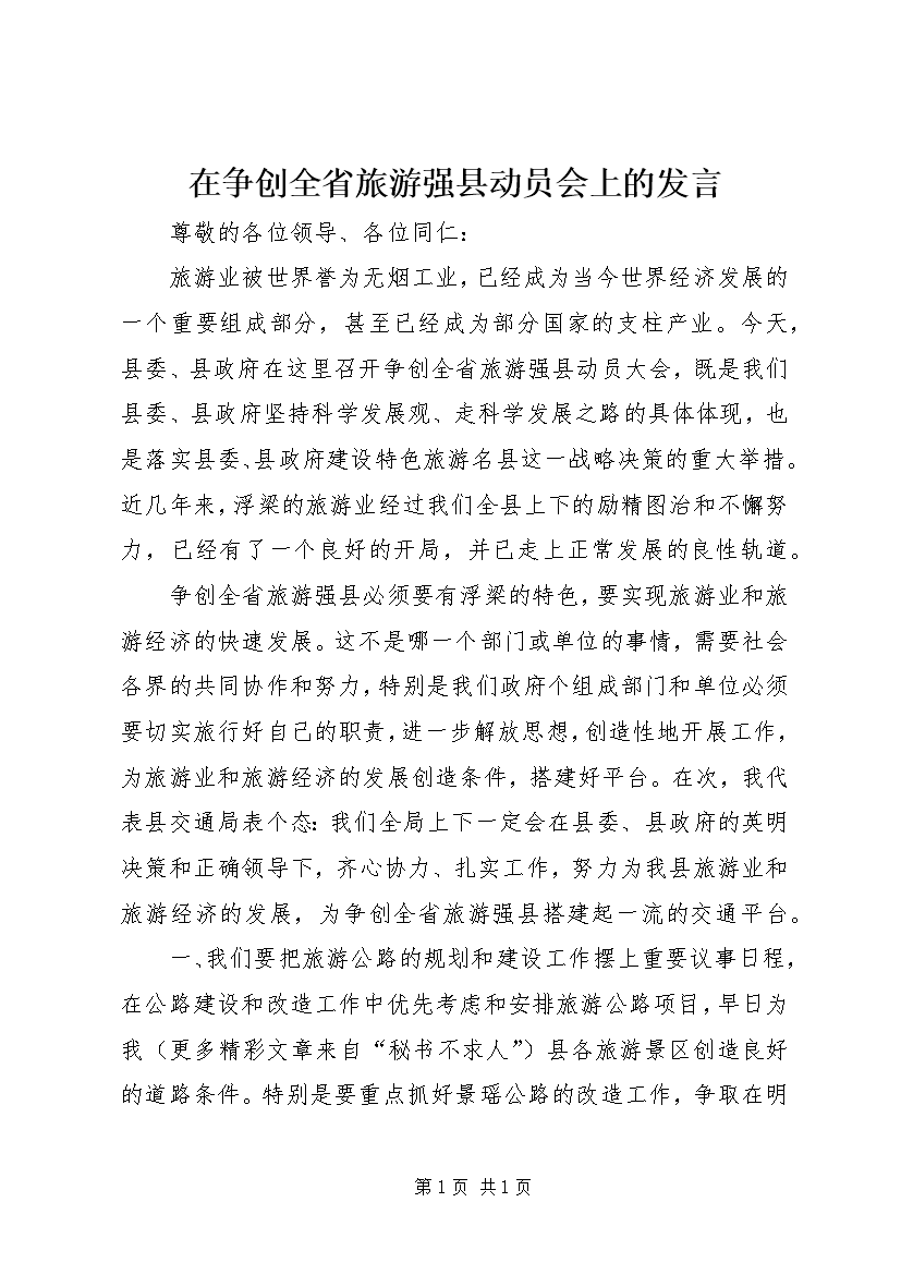 在争创全省旅游强县动员会上的发言 (5)