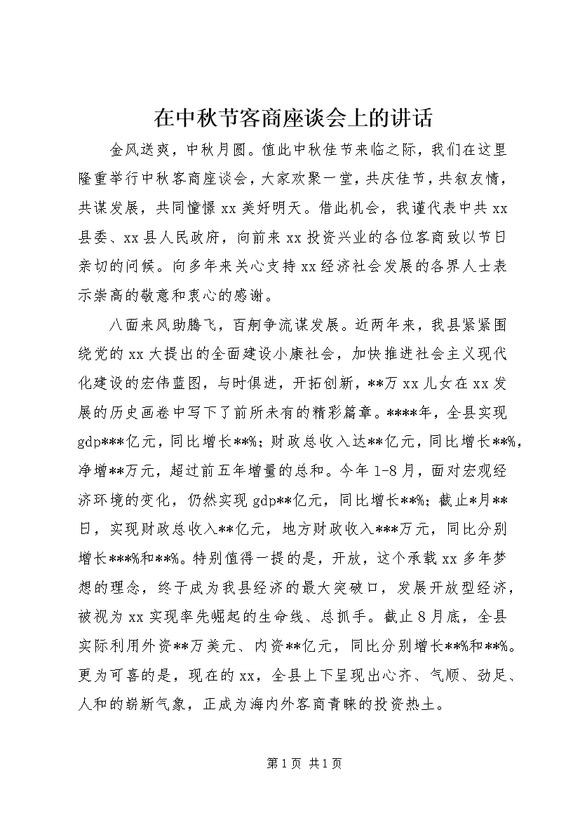 在中秋节客商座谈会上的讲话 (5)