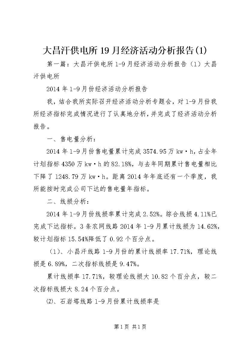 大昌汗供电所19月经济活动分析报告(1)
