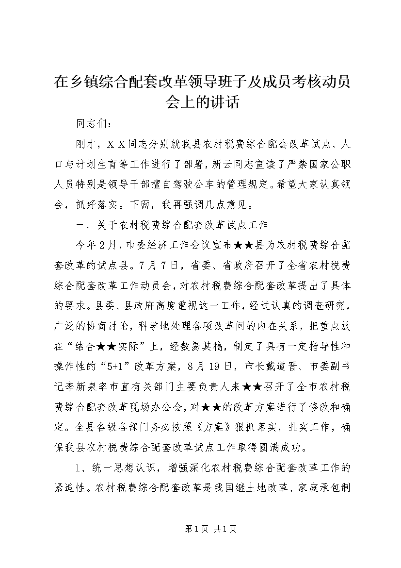 在乡镇综合配套改革领导班子及成员考核动员会上的讲话 (2)