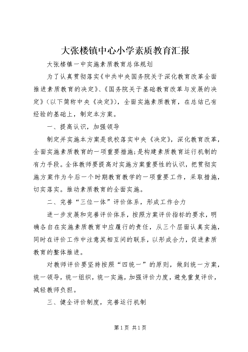 大张楼镇中心小学素质教育汇报