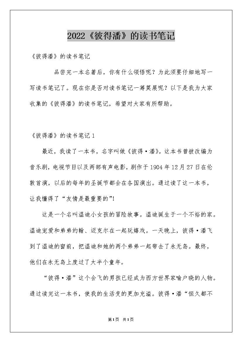 2022《彼得潘》的读书笔记