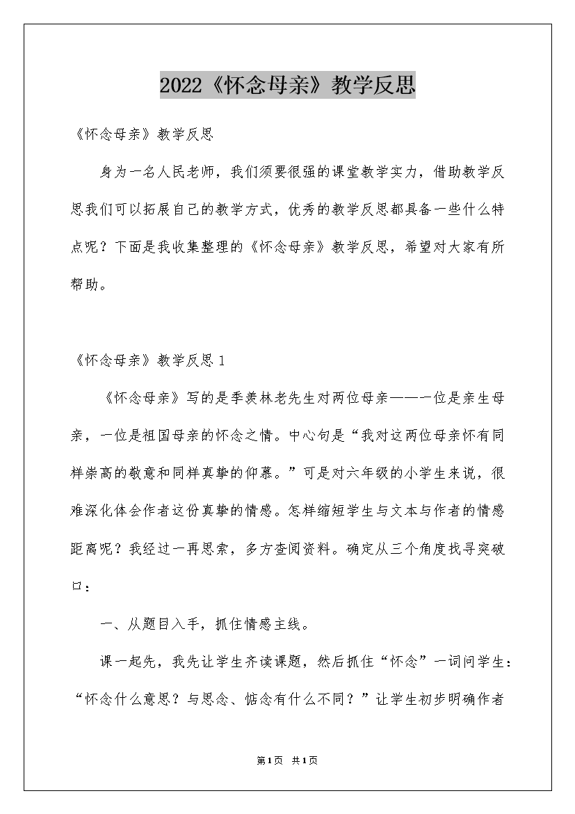 2022《怀念母亲》教学反思_4