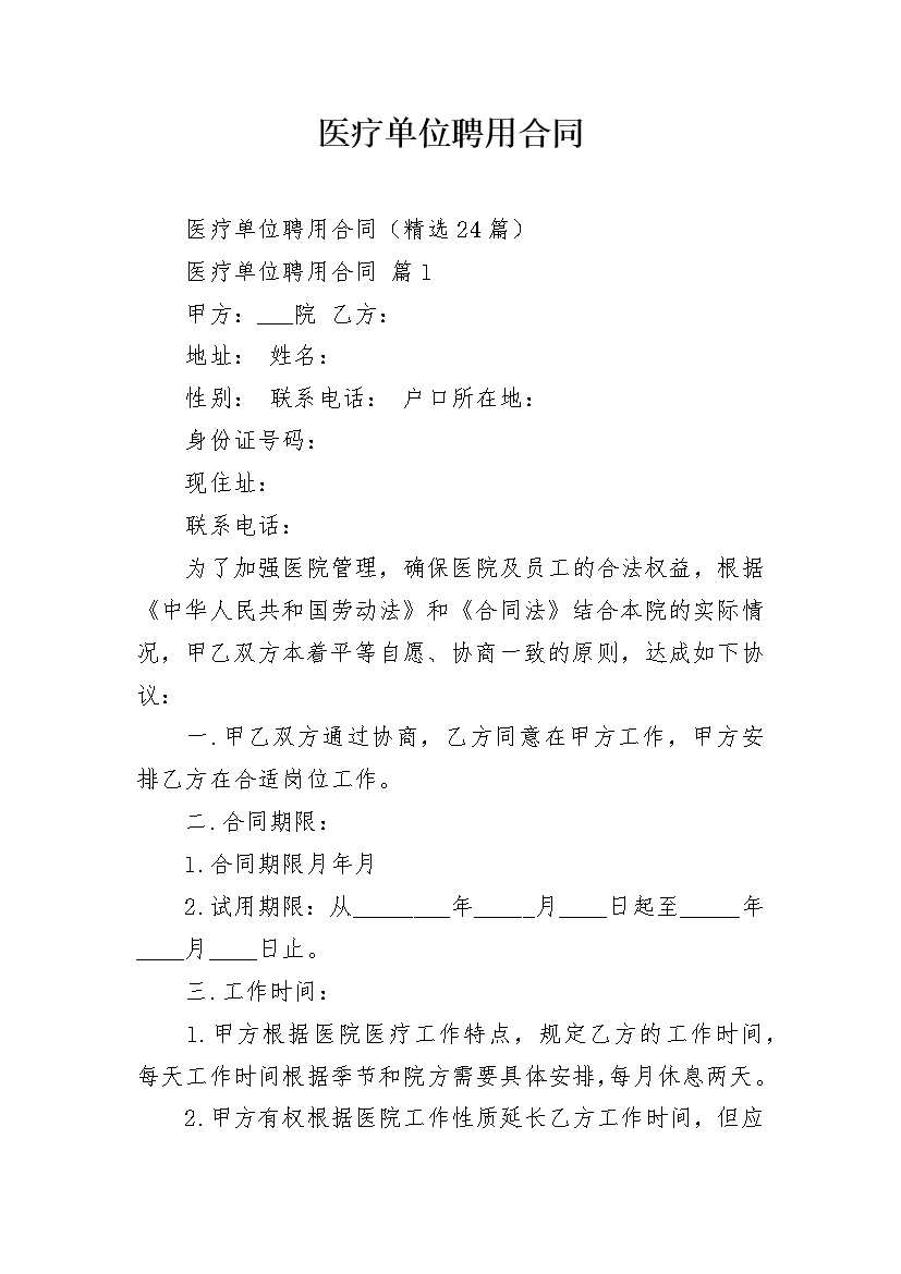 医疗单位聘用合同