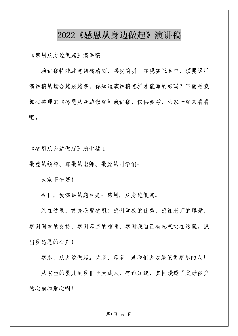 2022《感恩从身边做起》演讲稿