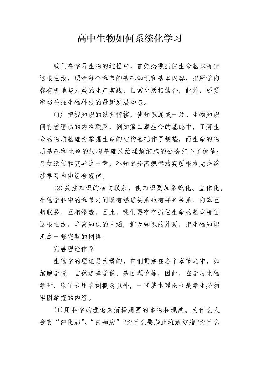 高中生物如何系统化学习