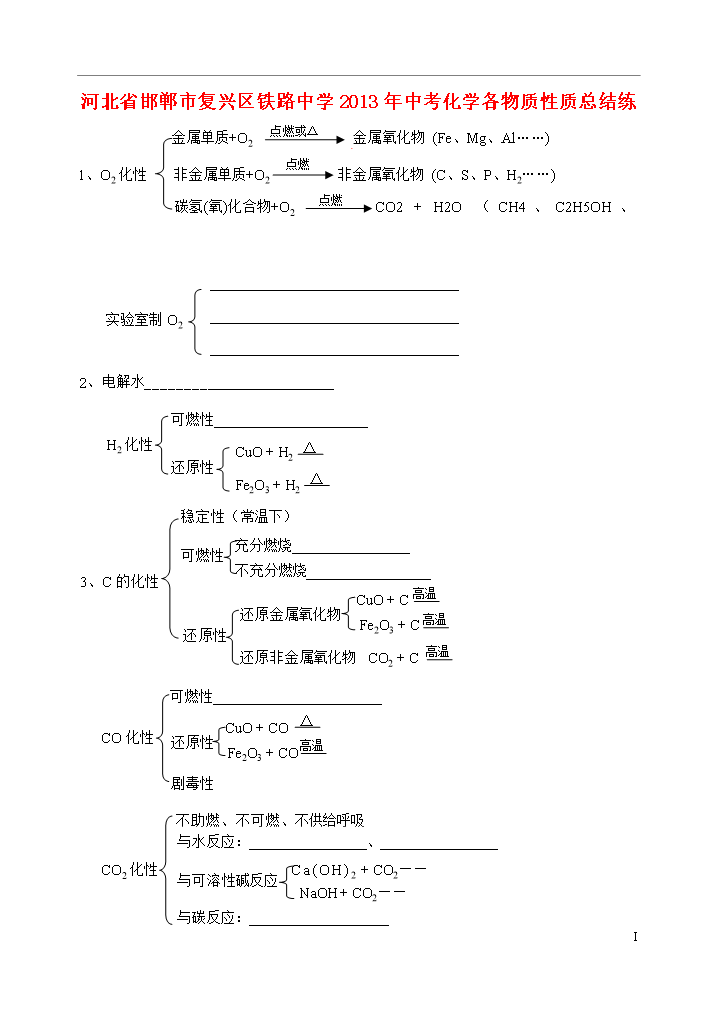 试题-河北-2014_河北省邯郸市复兴区铁路中学2013年中考化学 各物质性质总结练习(无答案)