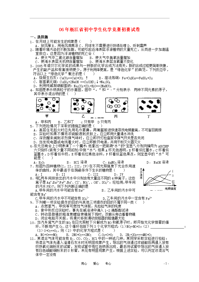 试题-浙江-2011_2006年初中化学竞赛试题(浙江赛区)