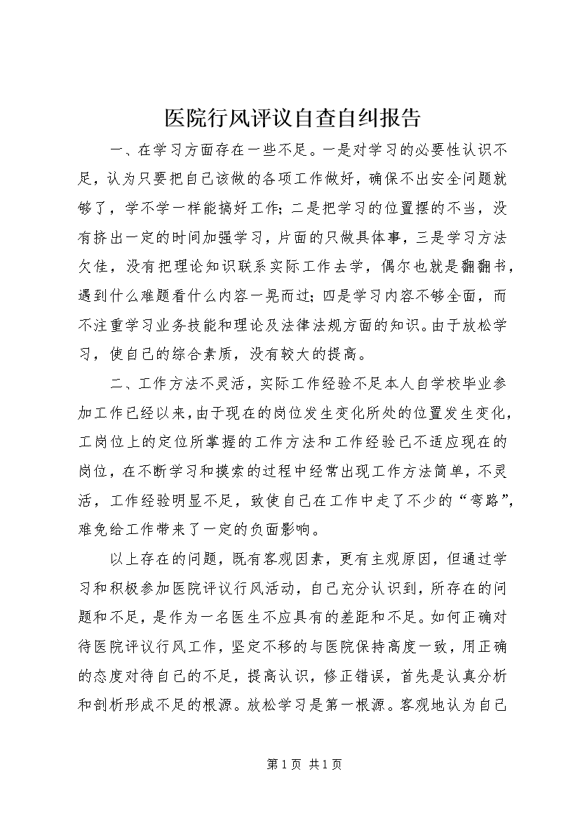 医院行风评议自查自纠报告_1