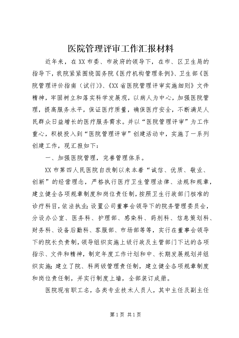 医院管理评审工作汇报材料_1