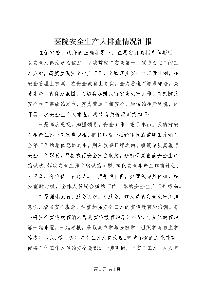 医院安全生产大排查情况汇报 (2)