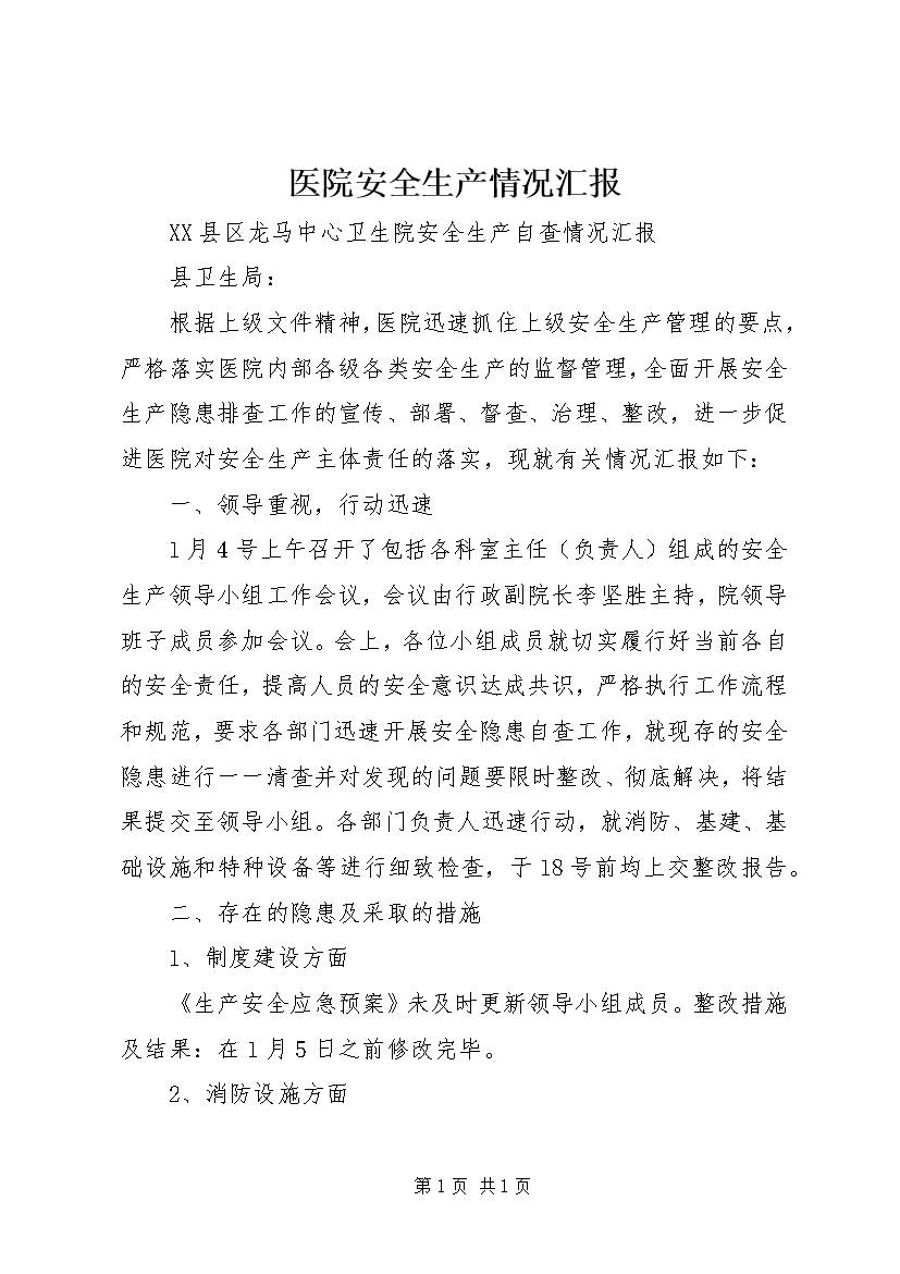医院安全生产情况汇报 (2)