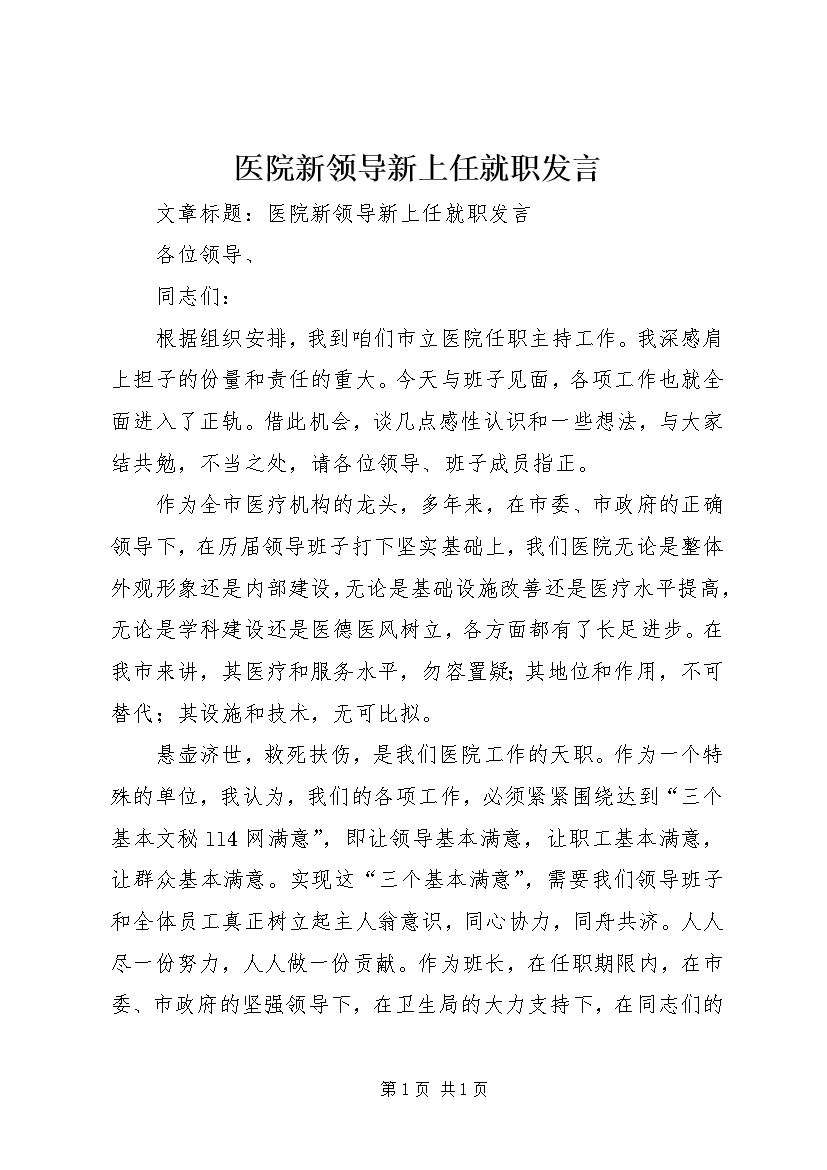 医院新领导新上任就职发言 (2)