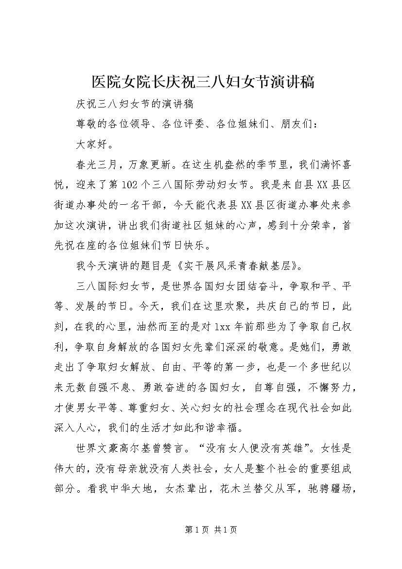 医院女院长庆祝三八妇女节演讲稿 (5)