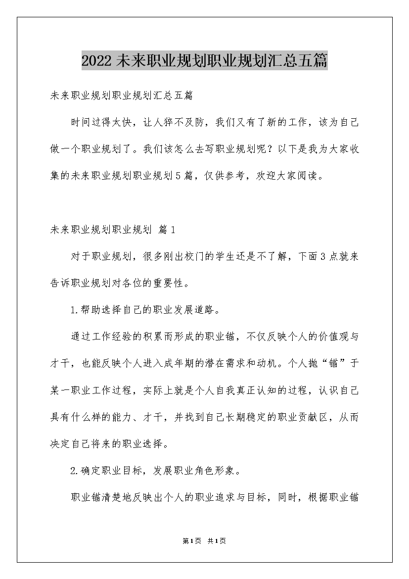 2022未来职业规划职业规划汇总五篇