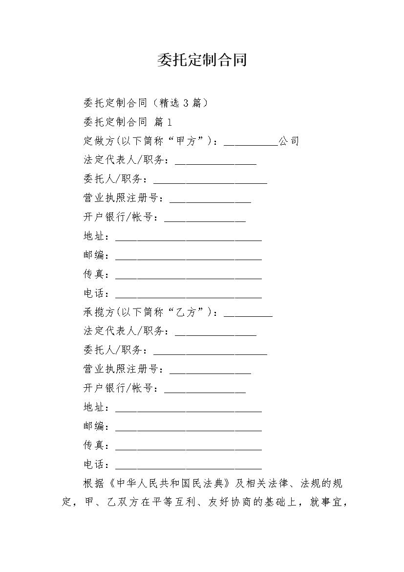 委托定制合同