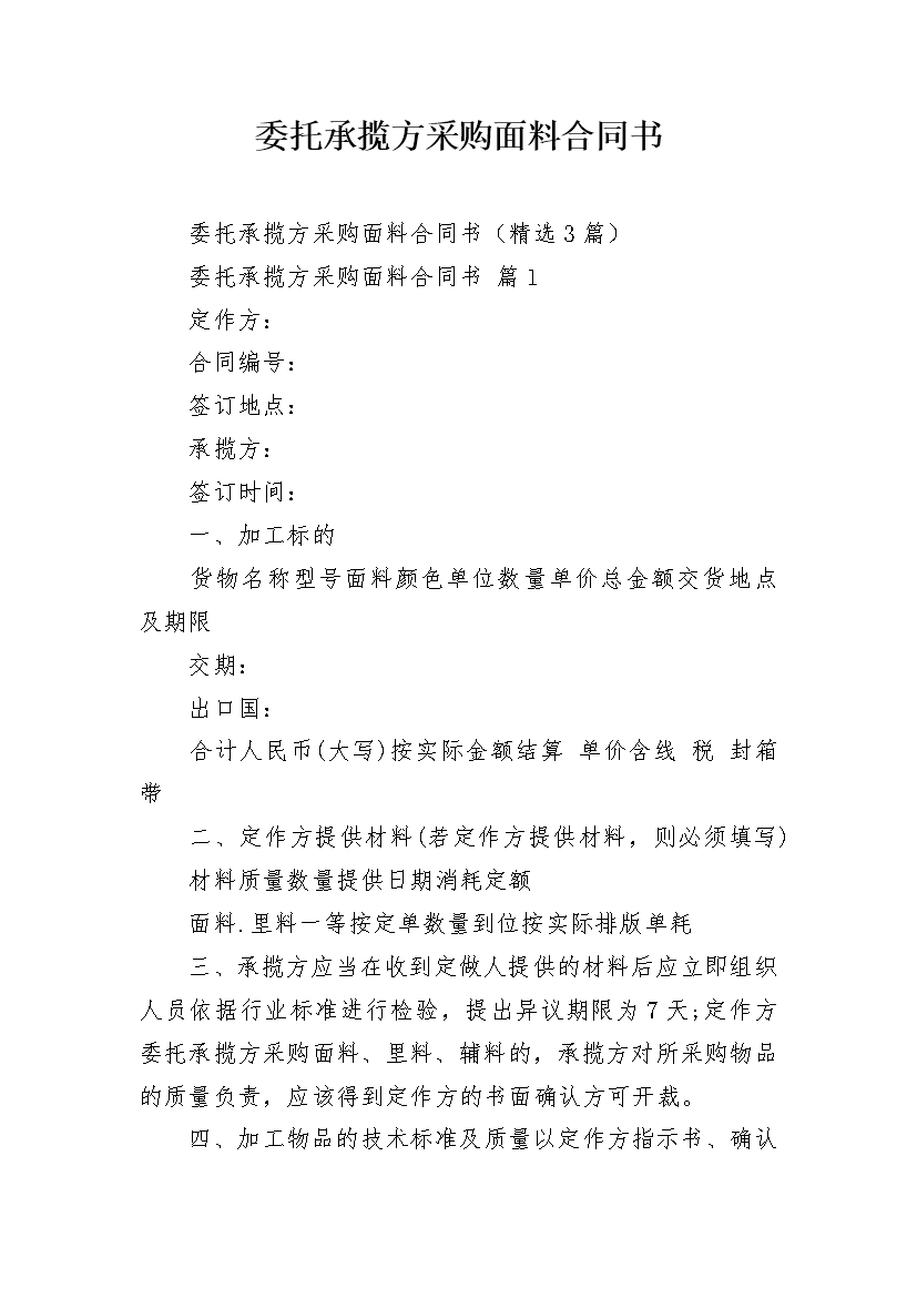 委托承揽方采购面料合同书