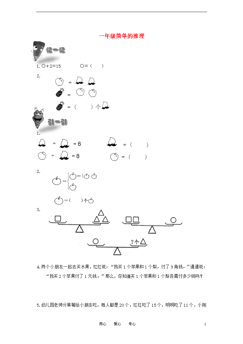 试题-全国-2011_一年级奥林匹克数学练习试卷 简单的推理(无答案)