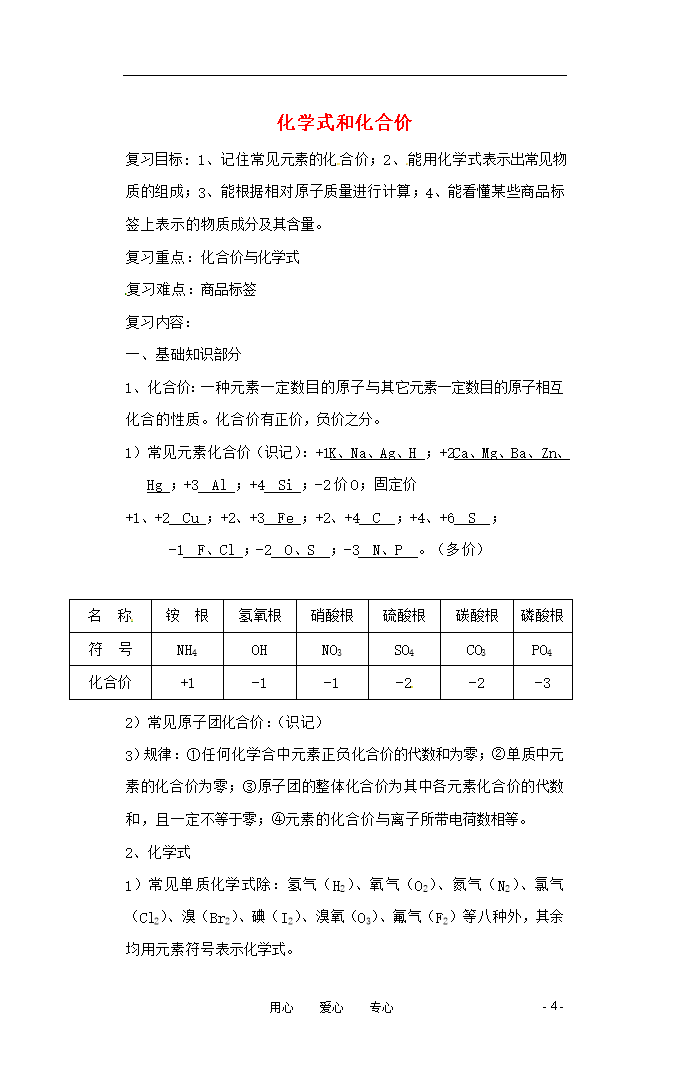 试题-全国-2011_2011年中考化学二轮复习专题训练 化学式与化合价