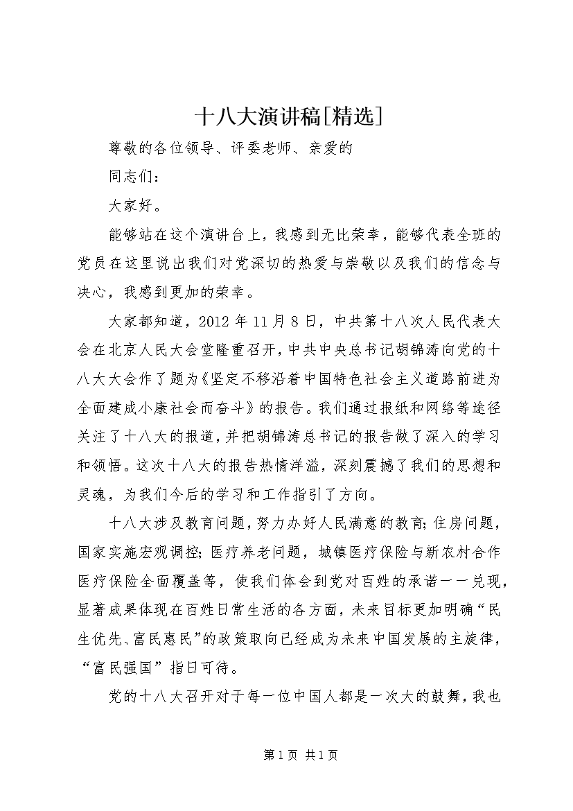 十八大演讲稿[精选]