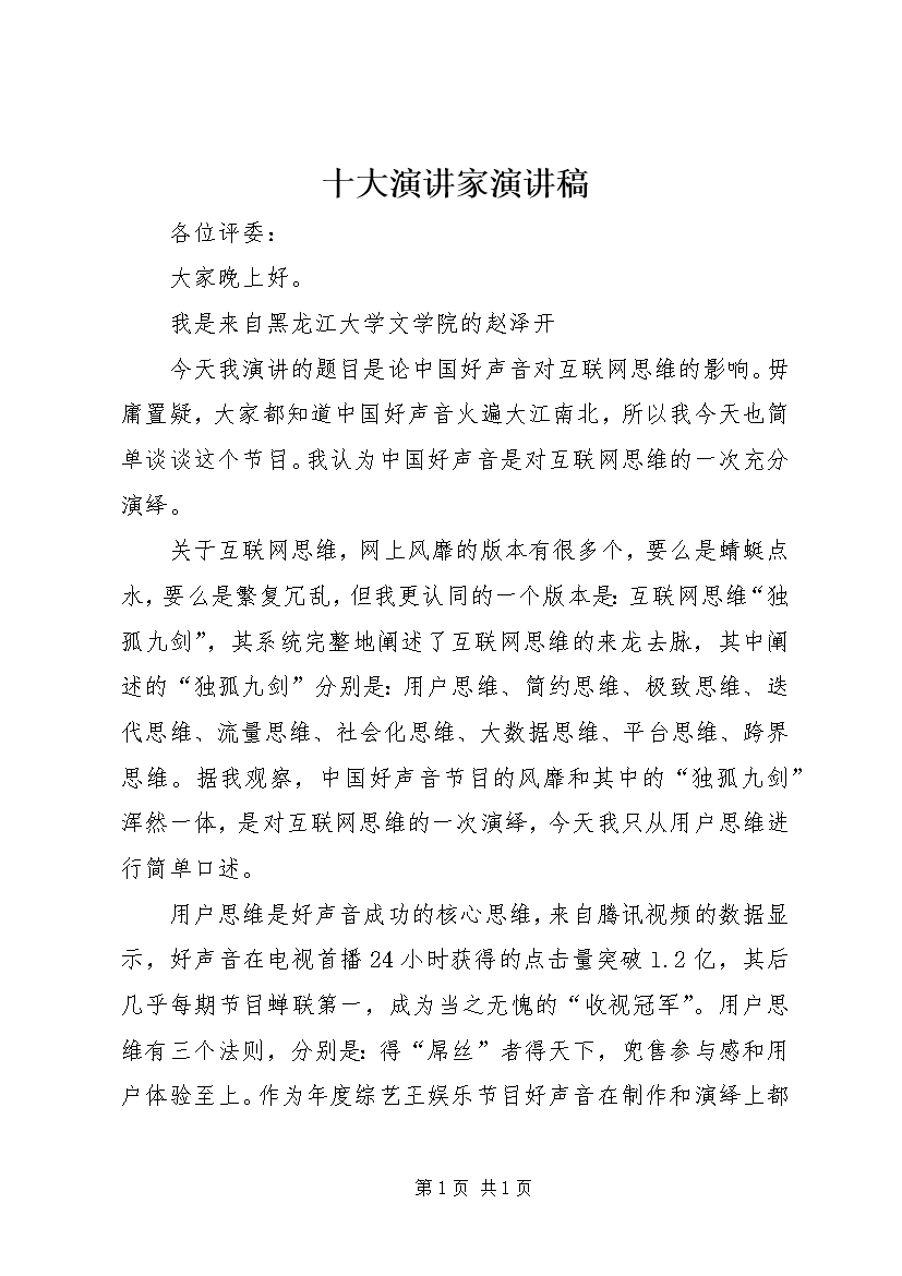 十大演讲家演讲稿