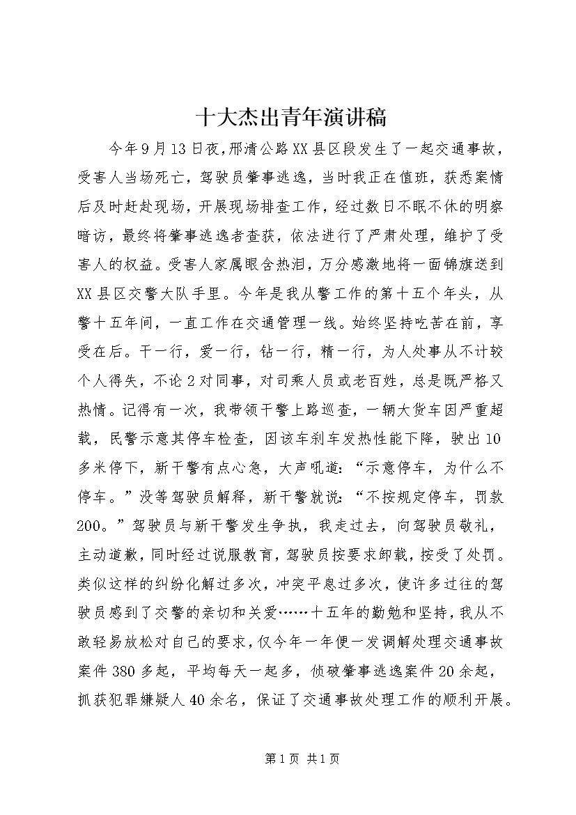 十大杰出青年演讲稿