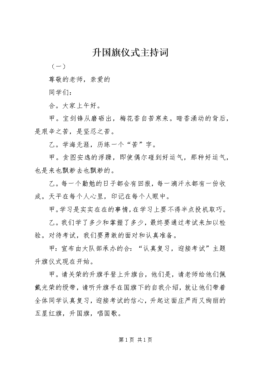 升国旗仪式主持词 (3)