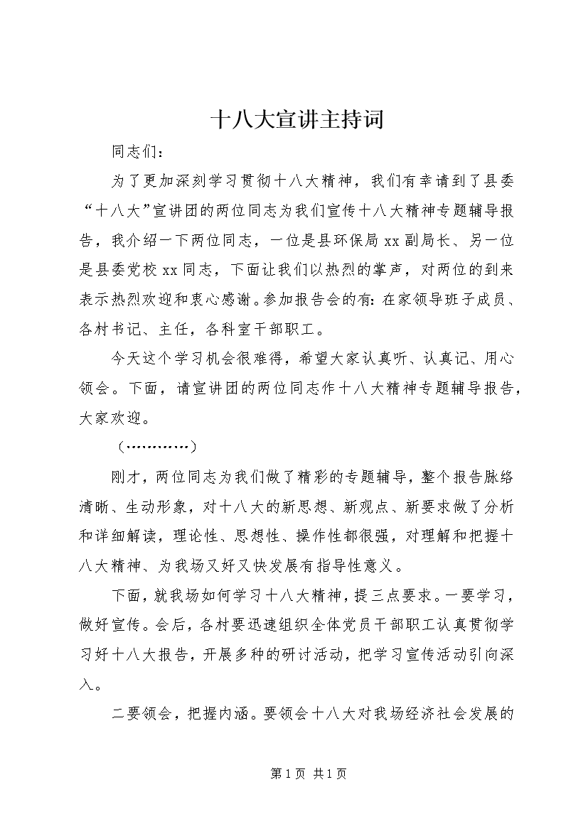 十八大宣讲主持词 (3)