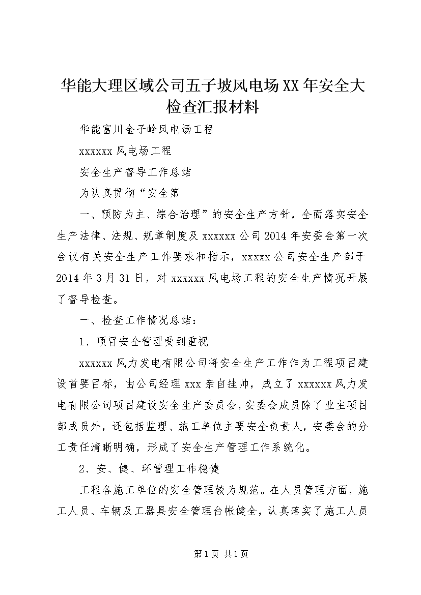 华能大理区域公司五子坡风电场XX年安全大检查汇报材料 (4)