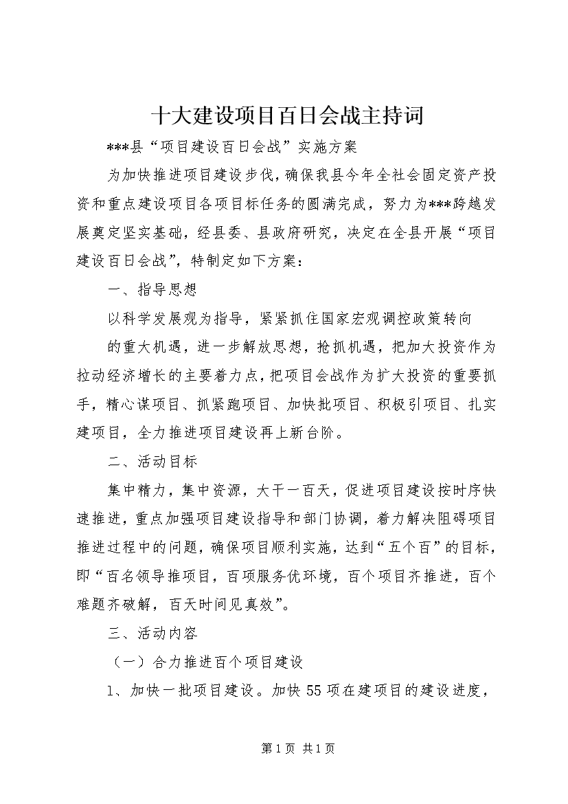 十大建设项目百日会战主持词 (3)