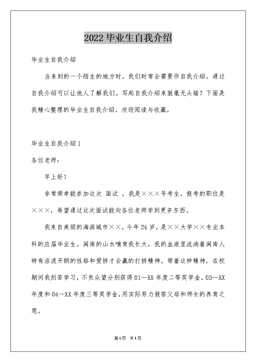 2022毕业生自我介绍