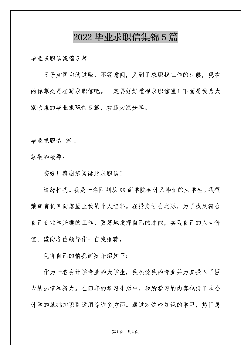 2022毕业求职信集锦5篇