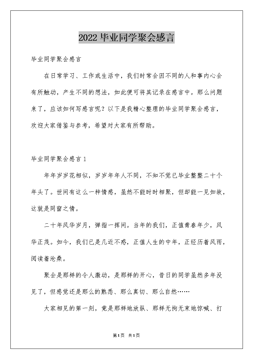 2022毕业同学聚会感言