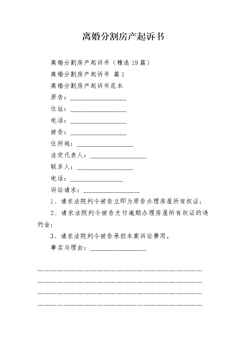 离婚分割房产起诉书