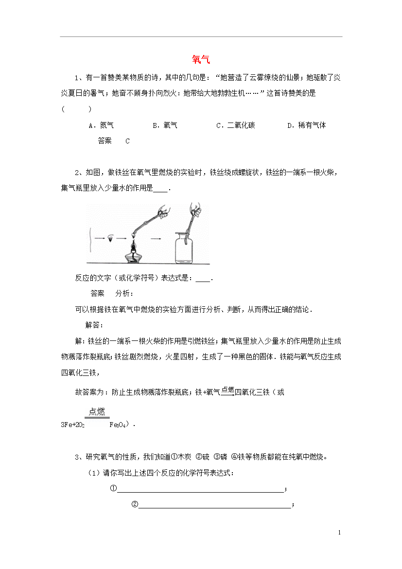 试题-黑龙江-2015_黑龙江省大庆市喇中2015初中化学 考题精选复习6 氧气