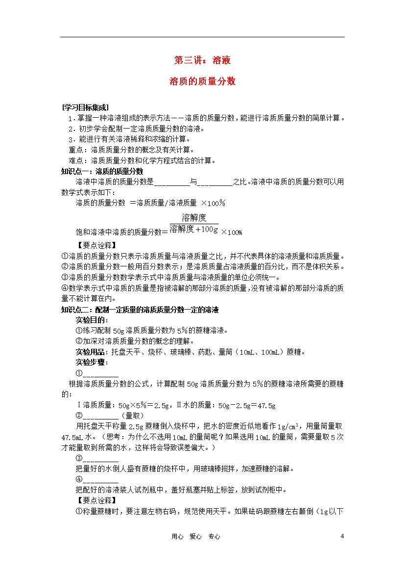 试题-全国-2011_2011九年级化学寒假补课资料 第三讲 溶液(无答案) 人教新课标版